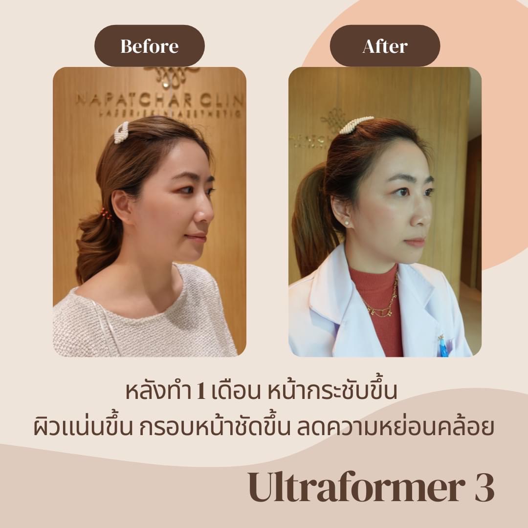 Ultraformer lll เห็นผลตั้งแต่ครั้งแรกที่ทำ โดยจะเริ่มเห็นผลหลังทำ 1 เดือนขึ้นไป ผลลัพธ์หลังทำจะอยู่ได้นาน 6-8 เดือน